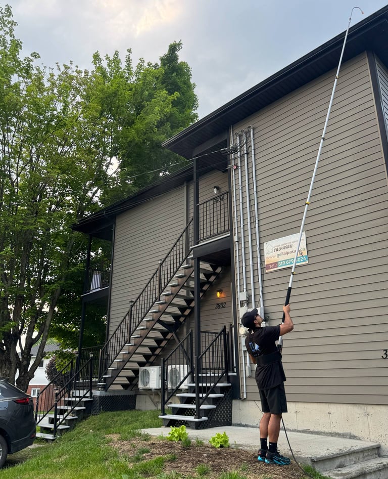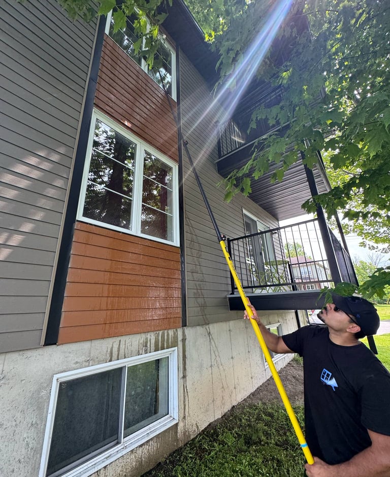 Services experts de nettoyage de vitres, gouttières et à haute pression à Sherbrooke.